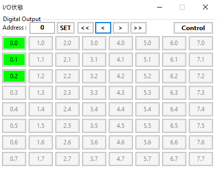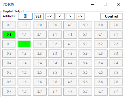 Io.SetOutBit(0x00, 0x00, outData[0]); (書き込みアドレス、bitのアドレス、出力値)